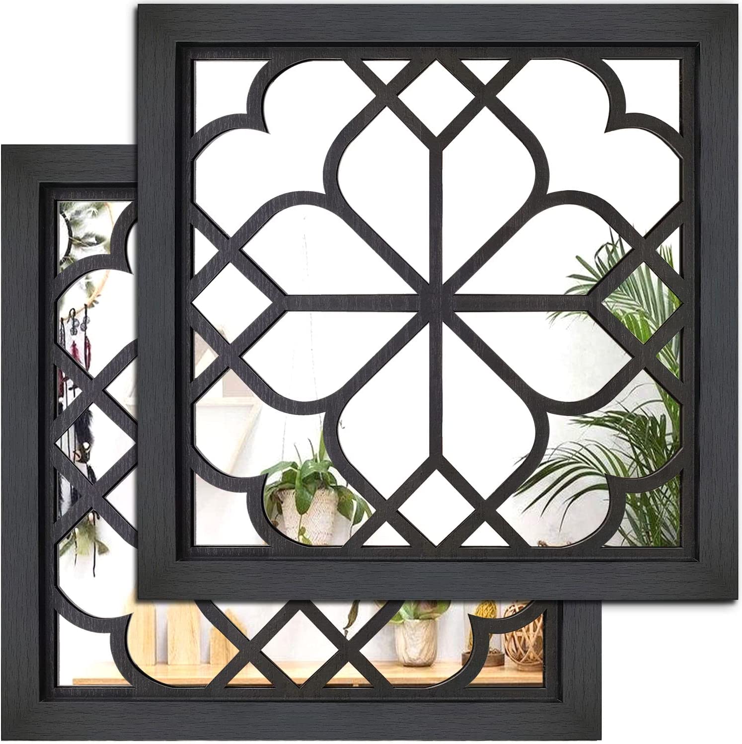 2 PCS Square Wall Mirror,Gorgeous Rustic Farmhouse Accent -Black 12 x12"