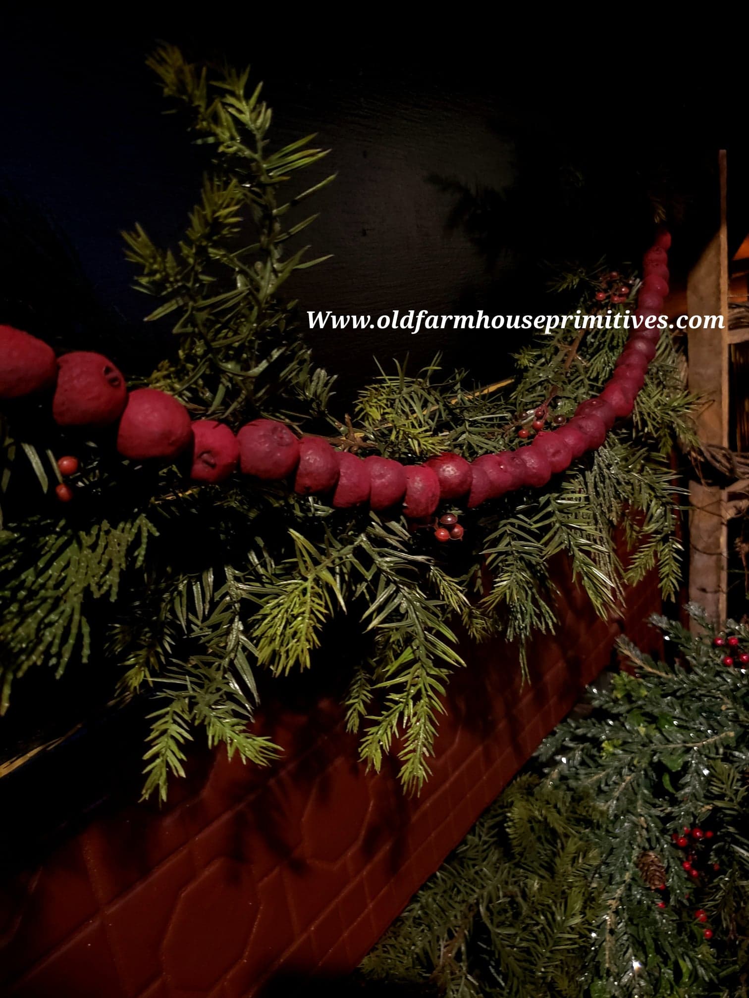 l just these little pantry apples! They look like little crab apples. They measure between 1/2" to 1" diameter. Perfect to swag in front of a fireplace, hang off a peg rack hanging them loop to loop on one peg, or out of a big ol' dough bowl! Hang them in front of your greens and you have a great Holiday display! Makes great garland for your trees! This is for a 3' pantry apple garland. Made in USA!