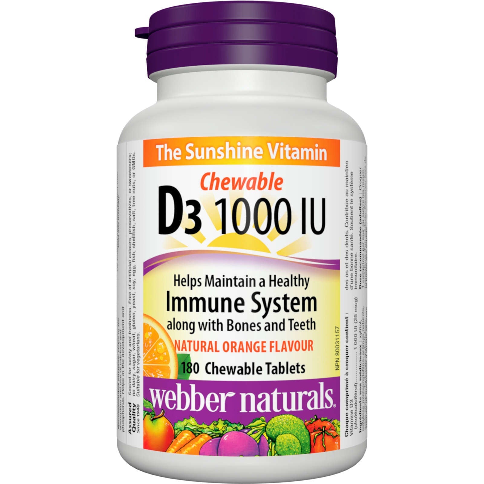 Webber Naturals Vitamin D3 1000 IU Chewable Tablets Sunshine Boost 180 pcs NEW