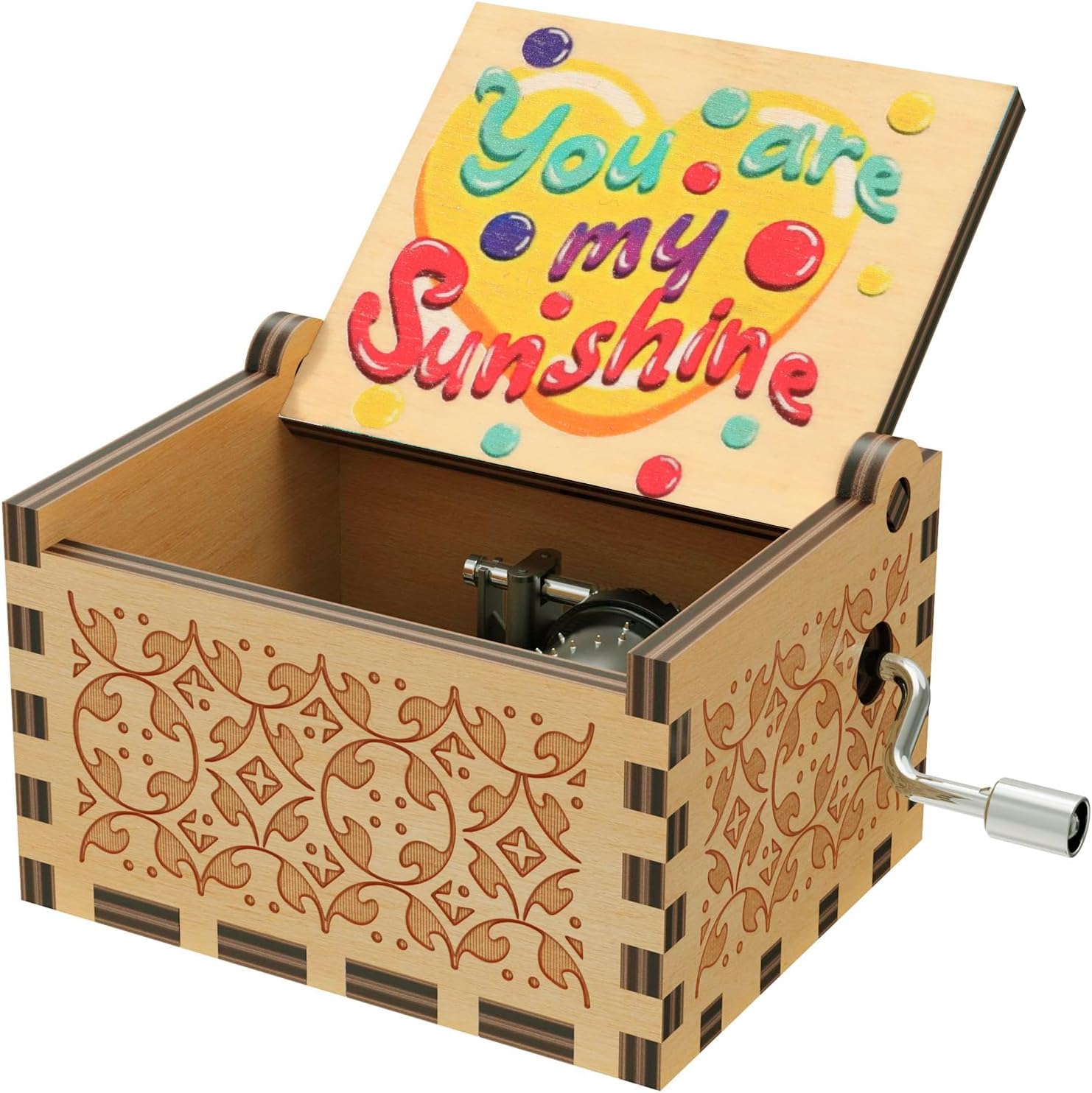 Classical Music: The theme of this music box is the beautiful song "You are My Sunshine." As you listen to the melody, it brings a positive and uplifting atmosphere. The engraved words inside the music box further express your love to friends, children, or Mom, creating a meaningful and memorable gift.